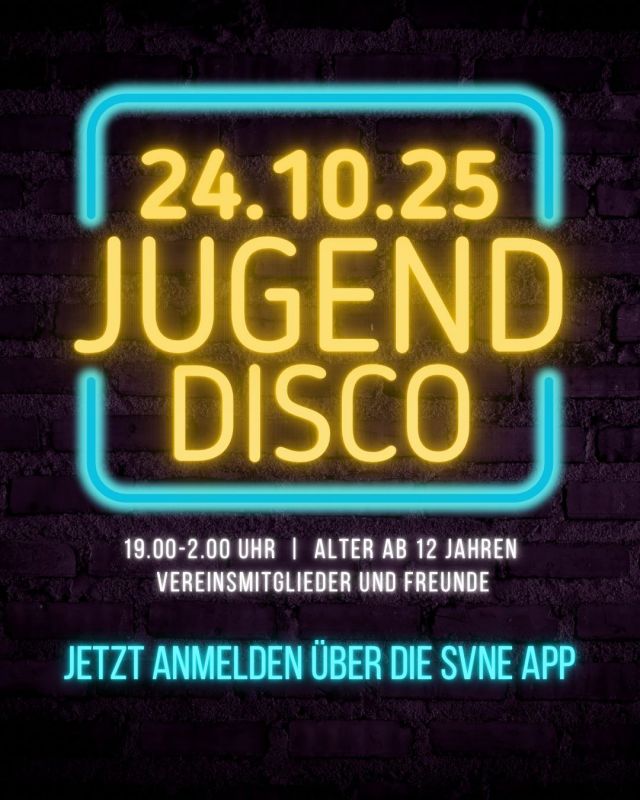 Ganz einfach über die SVNE App. Im Kalender die Jugenddisco am 24.10.2025 auswählen und dort anmelden. Wer Freunde mitbringt, kann diese dort mit Namen eintragen.